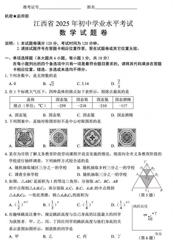 本文標題:2025年江西中考數學試卷及參考答案@中考生,快來測一測適合報考的學校吧!