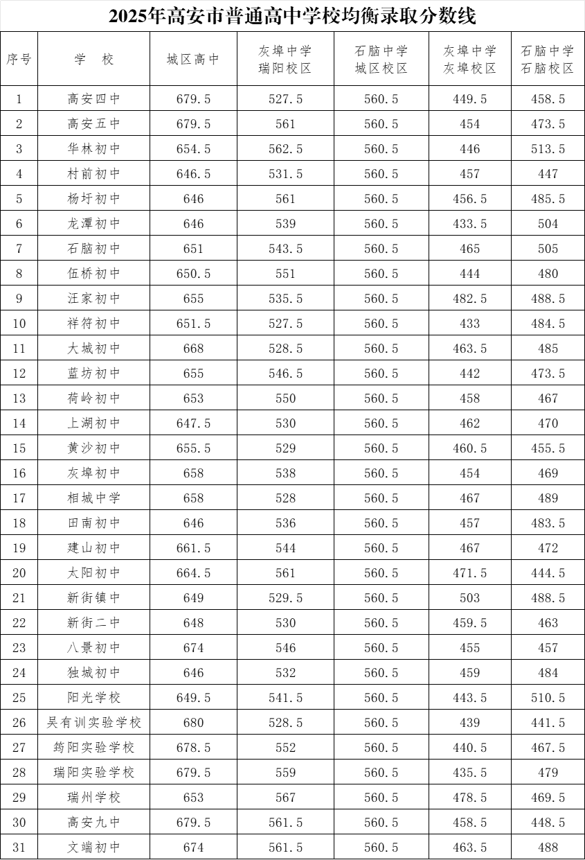 附件:2025年高安市普通高中學校均衡錄取分數線