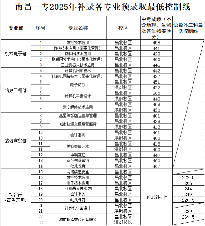 2025年南昌市第一中等專業(yè)學(xué)校秋季補(bǔ)錄分?jǐn)?shù)線