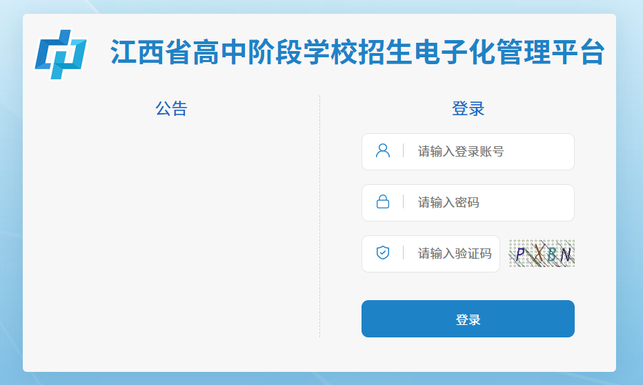 第一步:登錄江西省高中階段學校招生電子化管理平臺:https://zkzz.jxedu.gov.cn,考生憑本人中考準考證上的報名序號和填報密碼,輸入驗證碼后登錄管理平臺填報志愿。